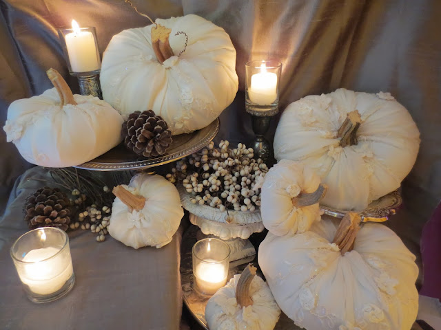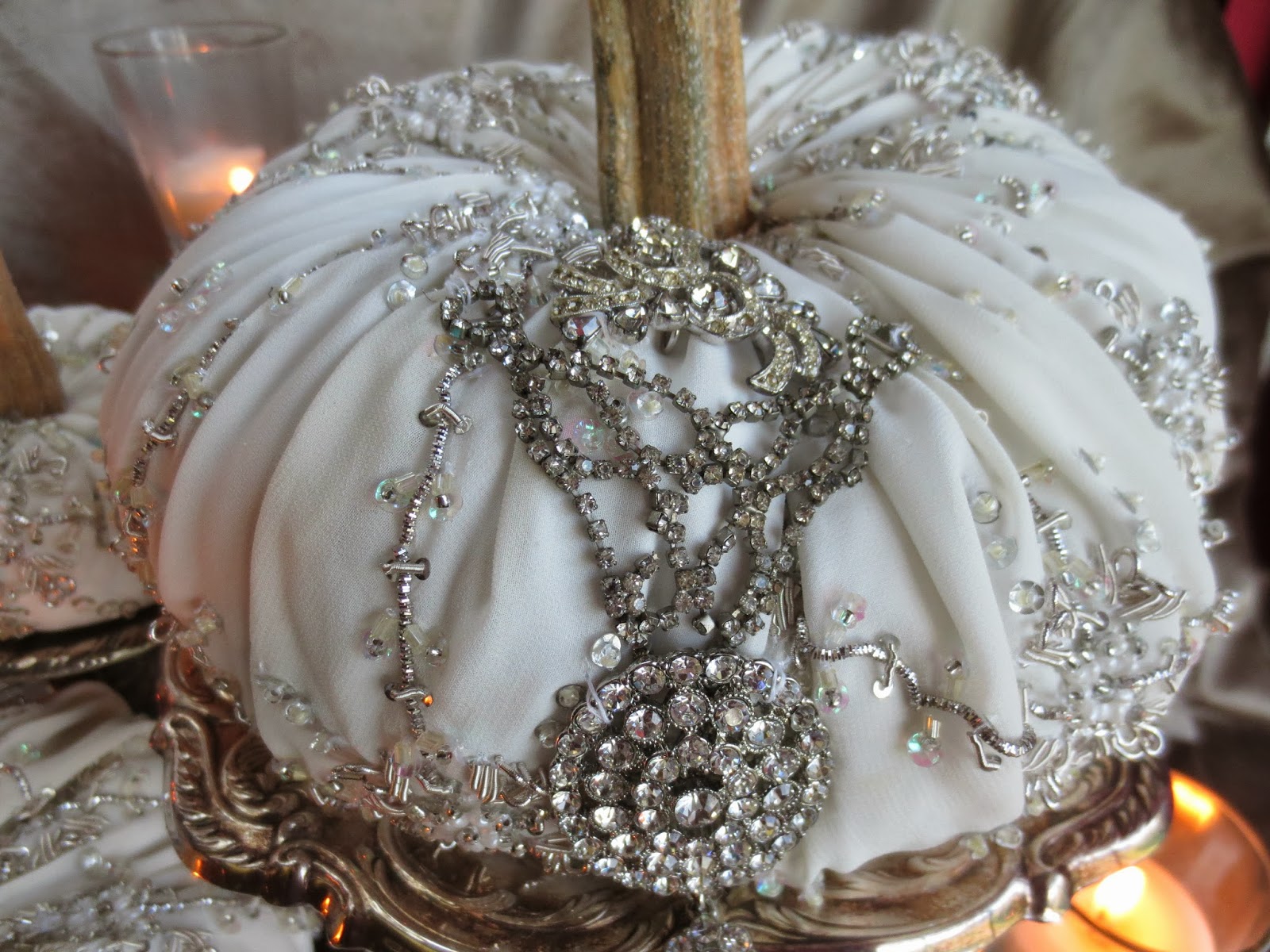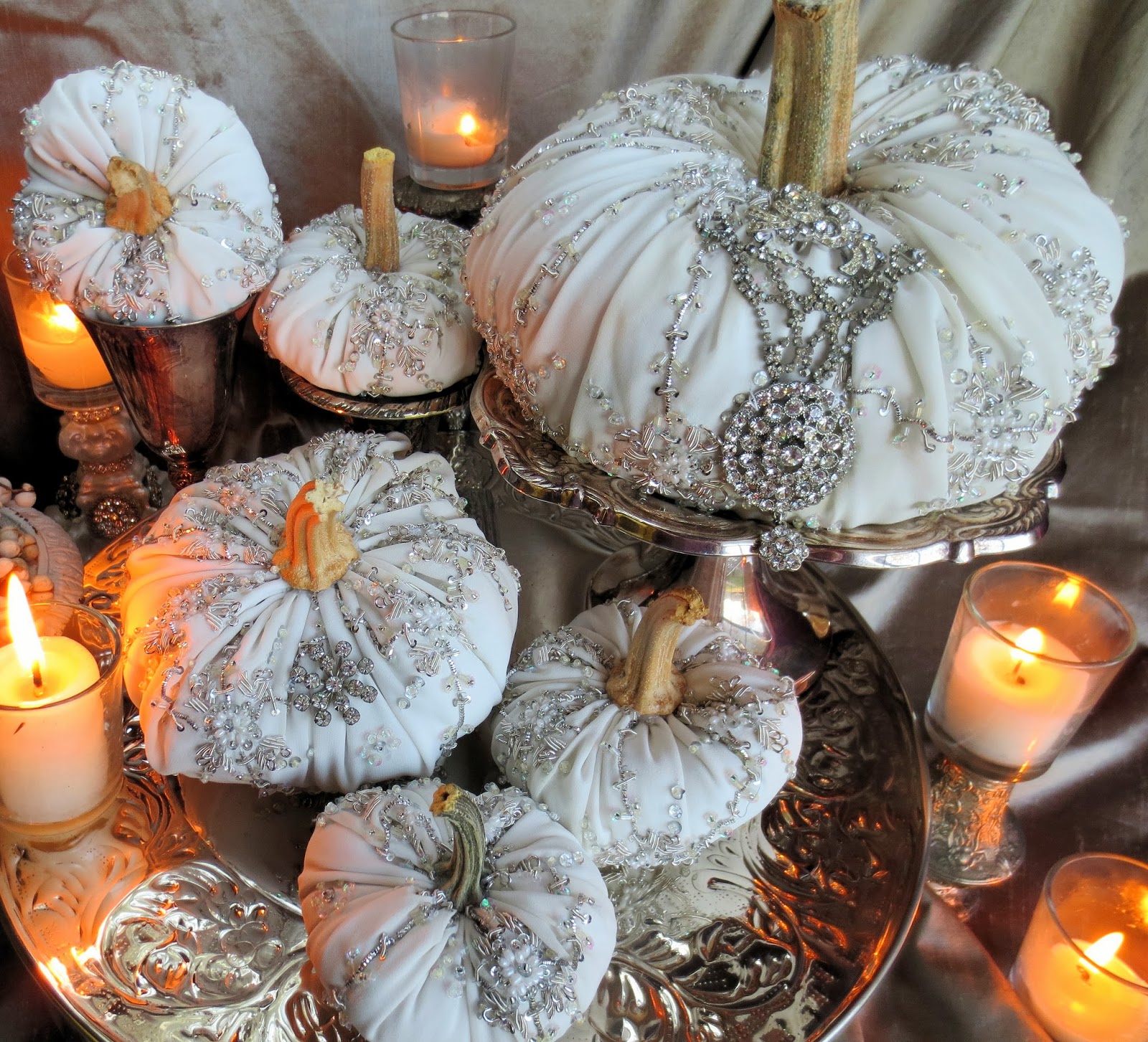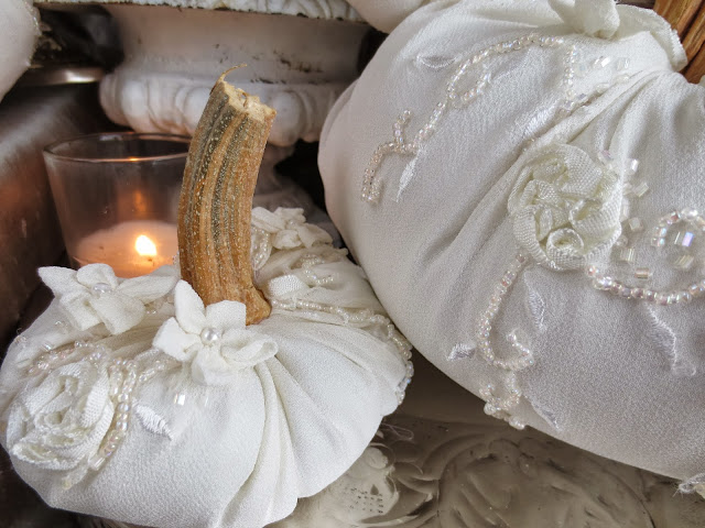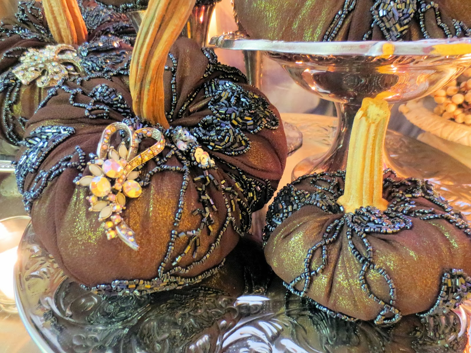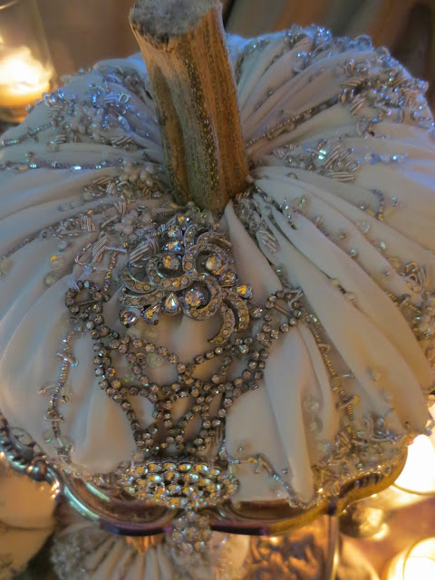 14. Dear Catherine these pumpkins are utterly elegant and lush and just gorgeous! I love the beautiful beaded fabric you have used.